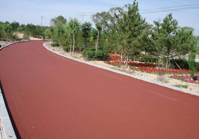 什么是彩色防滑路面: 彩色防滑路面使用的是一種獨特的,擁有自主產權的聚氨酯環保型混合物,采用國外引進技術及進口原材料,自主生產的無溶劑雙組份聚氨酯高強度粘合材料(適合于彩色防滑路面及彩石透水路面),不含任何溶劑,使用安全環保。能直接粘合在瀝青、混凝土、鐵板、木板等材料表面,產品延伸性高、阻燃性佳、抗腐性強,耐沾污。施工方法簡單、無味無害。比其它物料有更多的優點,產品中不含任何熔劑、無異味、無有毒揮發性物質、適合鋪設在任何公共活動場所的環保型產品。
